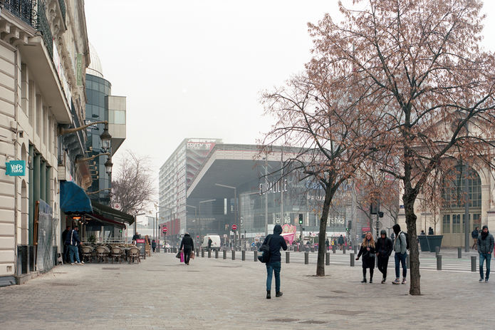 Réunion de Lille Europe et Lille Flandres, La place des Buisses englobe des situations urbaines très contrastées, entre encombrement d’usage, potentiel historique, tensions urbaines, aménités relatives et modernité commerciale. A la confluence de flux multimodaux (train, métro, tramway, voiture, bus, piétons, cycles…), plus de 70 000 personnes transitent chaque jour autour des gares. Ce sera le double en 2050. Les aménagements devaient anticiper cette évolution, tout en donnant une véritable valeur de lien à l’espace public qui articule les grands ensembles urbains des abords des deux gares.